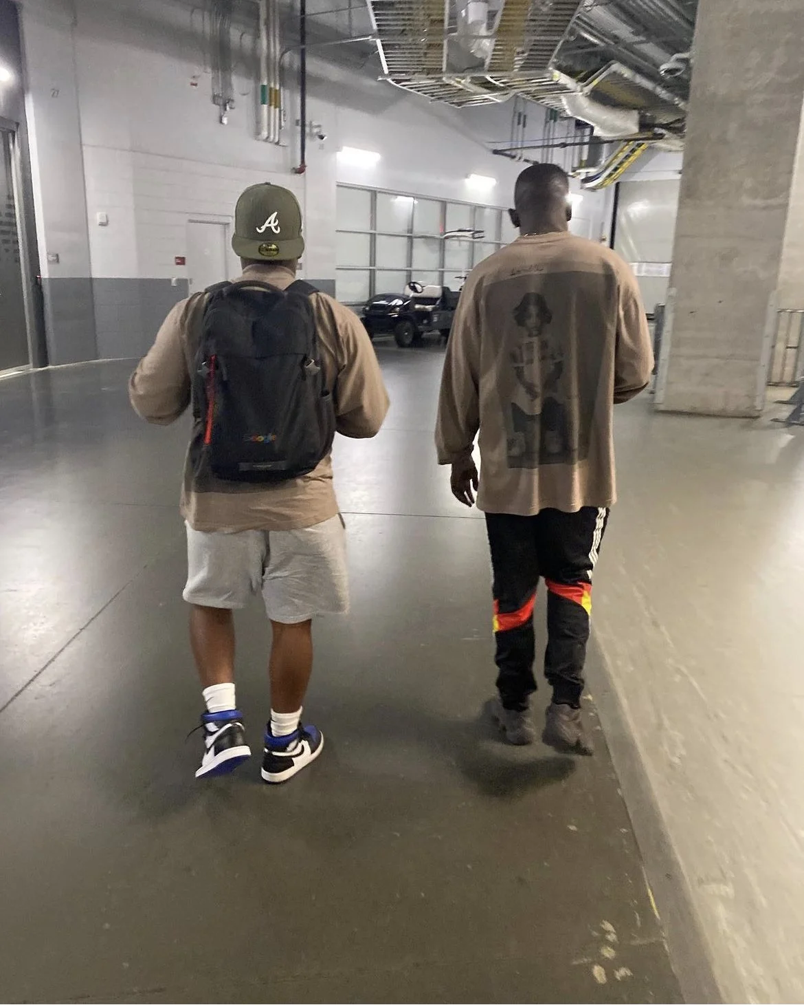 Donovan and EVP of Columbia records Bu Thiam in the bottom of Mercedes Benz Stadium, during the recording of Kanye's Donda album where Kanye rented out the stadium for 2 weeks View fullsize